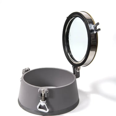 Stainless and brass opening - Steel frame in conical shape to prevent stagnant water to seat against the seals. Also opens the field of vision to the outside - Porthole ready for welding.